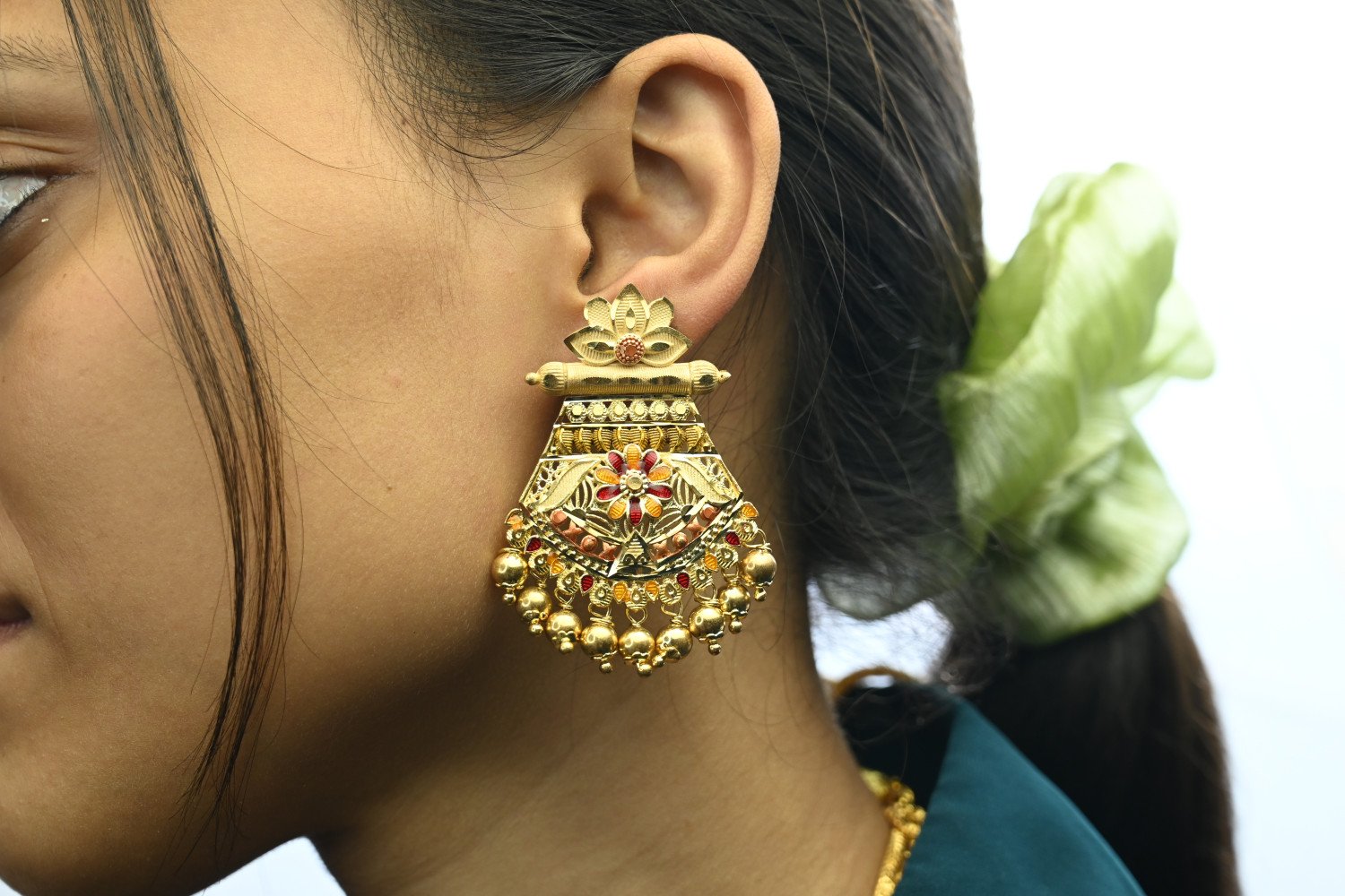 Command the room with the majestic splendor of our 1.5mg Gold Polish Rani Haar. This "Queen’s Necklace" is a masterpiece of traditional craftsmanship, featuring multi-layered strings and a grand centerpiece pendant. The premium 1.5mg gold plating offers a deep, regal luster that perfectly replicates the look of heritage gold, making it the ultimate statement piece for brides and wedding guests who desire a royal silhouette.
