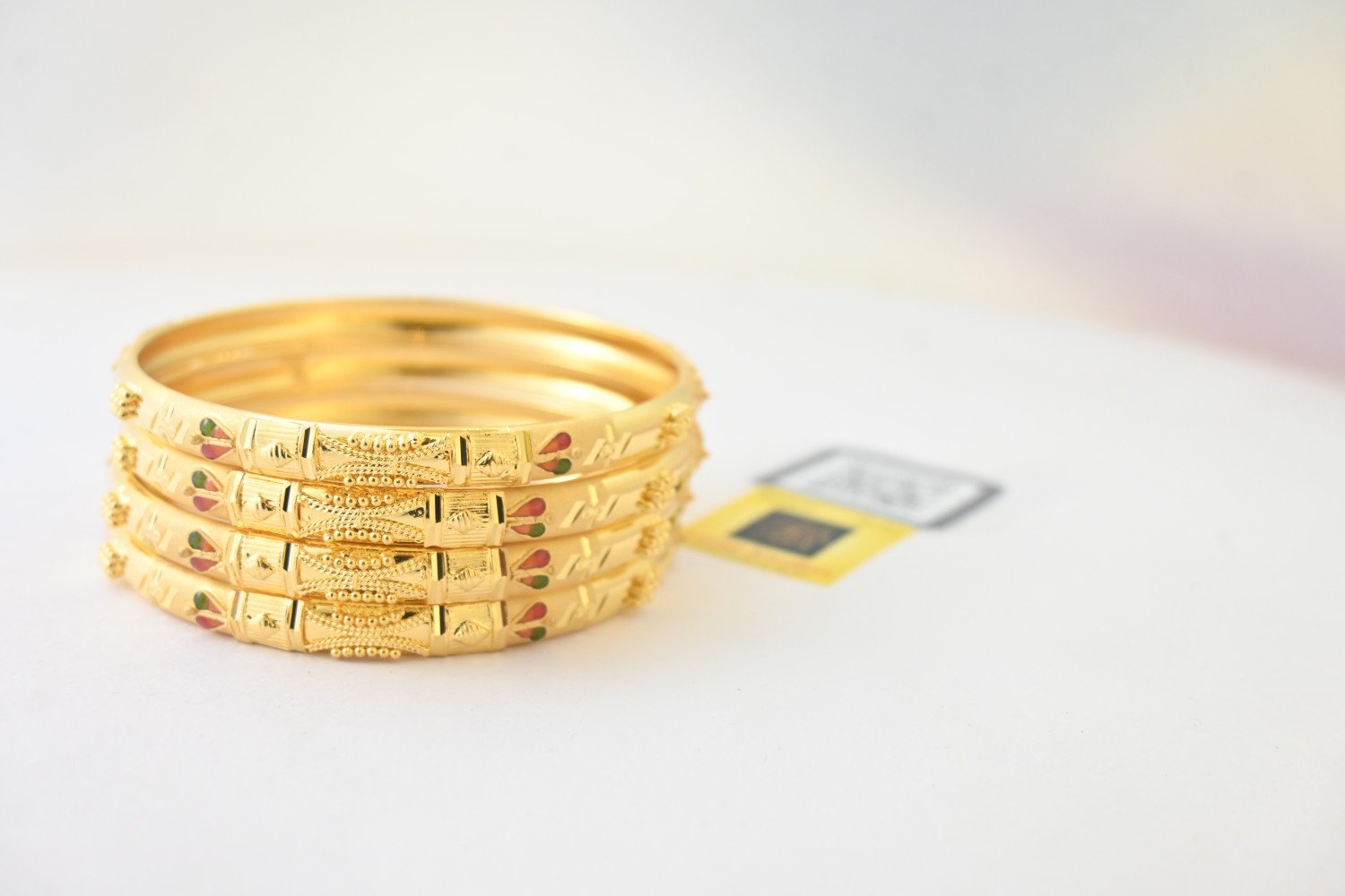 Product Colour: 2gms 24 Carat Gold Plated (2mm thick gold layer coated over it) Polish: Gold Plated Base metal: Brass/ Alloy Occasion: Bridal, Gifting, Party * 2gms 24 Carat Gold Plated ( 2mm thick gold layer coated over it) “Chic design meets elegant detail in this gold plated bangles set for the stylish lady. Features include a traditional texture, royal style, and latest trend design. Shining gold plating and brass construction ensure the bangles will make a lasting impression. Perfect for any occasion!” Laxmi Jewelers – our products are made from high quality material with best in comfort and look across the Globe. Our Brand is well known in jewelry sector and preferred by many Designers, Stars and Celebrities for the finest design. Perfect Gift our products are best as gift option for your Friends, Relative, Husband / Boyfriend during Anniversary, Birthday Valentines or any Festival. Care Instructions: Wipe your jewellery with a soft cloth after every use हर इस्तेमाल के बाद अपने आभूषण को एक मुलायम कपड़े से पोंछ लें Do not soak your jewellery in water आभूषण को पानी में न डुबाये Do not clean your jewellery in with soap or any other chemicals अपने आभूषणों को साबुन या किसी अन्य रसायन से साफ न करें Clean your jewellery using a soft brush, dipped in jewellery cleaning solution only केवल आभूषण की सफाई के रसायन के साथ एक नरम ब्रश का उपयोग करके अपने आभूषण को साफ करें
