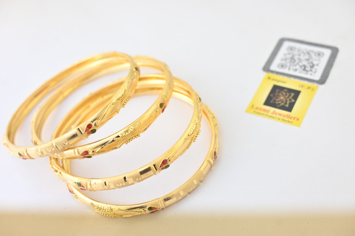 Product Colour: 2gms 24 Carat Gold Plated (2mm thick gold layer coated over it) Polish: Gold Plated Base metal: Brass/ Alloy Occasion: Bridal, Gifting, Party * 2gms 24 Carat Gold Plated ( 2mm thick gold layer coated over it) “Chic design meets elegant detail in this gold plated bangles set for the stylish lady. Features include a traditional texture, royal style, and latest trend design. Shining gold plating and brass construction ensure the bangles will make a lasting impression. Perfect for any occasion!” Laxmi Jewelers – our products are made from high quality material with best in comfort and look across the Globe. Our Brand is well known in jewelry sector and preferred by many Designers, Stars and Celebrities for the finest design. Perfect Gift our products are best as gift option for your Friends, Relative, Husband / Boyfriend during Anniversary, Birthday Valentines or any Festival. Care Instructions: Wipe your jewellery with a soft cloth after every use हर इस्तेमाल के बाद अपने आभूषण को एक मुलायम कपड़े से पोंछ लें Do not soak your jewellery in water आभूषण को पानी में न डुबाये Do not clean your jewellery in with soap or any other chemicals अपने आभूषणों को साबुन या किसी अन्य रसायन से साफ न करें Clean your jewellery using a soft brush, dipped in jewellery cleaning solution only केवल आभूषण की सफाई के रसायन के साथ एक नरम ब्रश का उपयोग करके अपने आभूषण को साफ करें