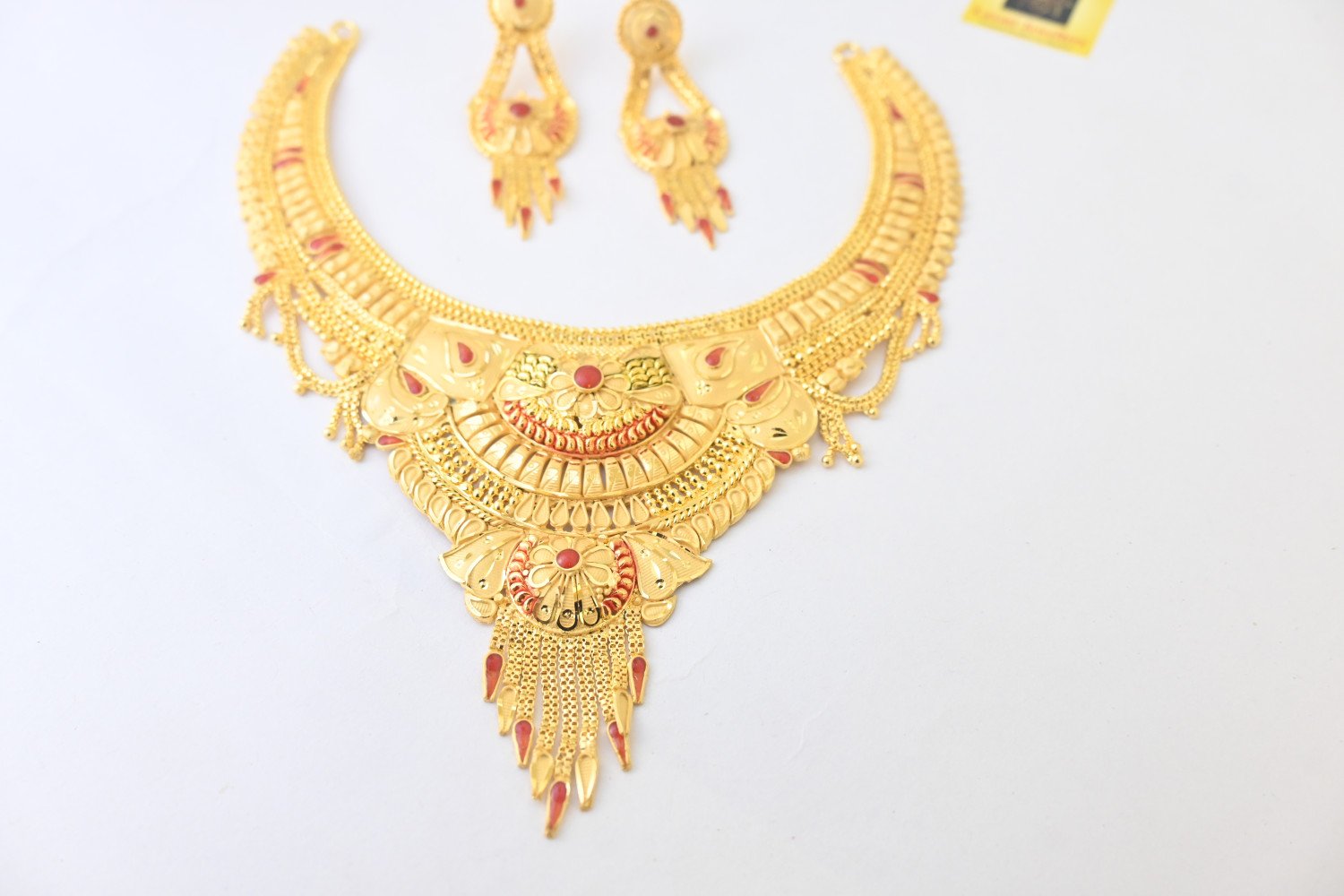 Product Colour: 2gms 24 Carat Gold Plated (2mm thick gold layer coated over it) Polish: Gold Plated Base metal: Brass/ Alloy Occasion: Bridal, Gifting, Party * 2gms 24 Carat Gold Plated ( 2mm thick gold layer coated over it) “Chic design meets elegant detail in this gold plated jhale set for the stylish lady. Features include a traditional texture, royal style, and latest trend design. Shining gold plating and brass construction ensure the jhale will make a lasting impression. Perfect for any occasion!” Laxmi Jewelers – our products are made from high quality material with best in comfort and look across the Globe. Our Brand is well known in jewelry sector and preferred by many Designers, Stars and Celebrities for the finest design. Perfect Gift our products are best as gift option for your Friends, Relative, Husband / Boyfriend during Anniversary, Birthday Valentines or any Festival. Care Instructions: Wipe your jewellery with a soft cloth after every use हर इस्तेमाल के बाद अपने आभूषण को एक मुलायम कपड़े से पोंछ लें Do not soak your jewellery in water आभूषण को पानी में न डुबाये Do not clean your jewellery in with soap or any other chemicals अपने आभूषणों को साबुन या किसी अन्य रसायन से साफ न करें Clean your jewellery using a soft brush, dipped in jewellery cleaning solution only केवल आभूषण की सफाई के रसायन के साथ एक नरम ब्रश का उपयोग करके अपने आभूषण को साफ करें