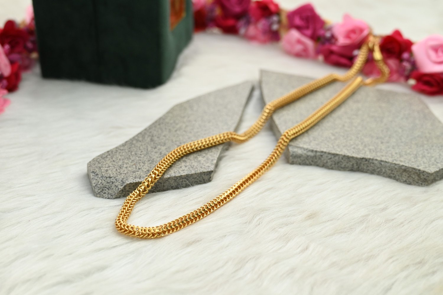 Define your style with the rugged elegance of our 1.5mg Gold Polish Men’s Chain. Crafted for the modern man who values tradition, these chains are a perfect blend of strength and sophistication. Whether it's a classic Curb link, a sturdy Figaro, or a sleek Nawabi design, our chains feature premium 1.5mg gold plating that delivers the heavy, rich look of solid gold. Designed to be a daily companion or a wedding statement, this collection brings a touch of "Macho" luxury to every outfit.