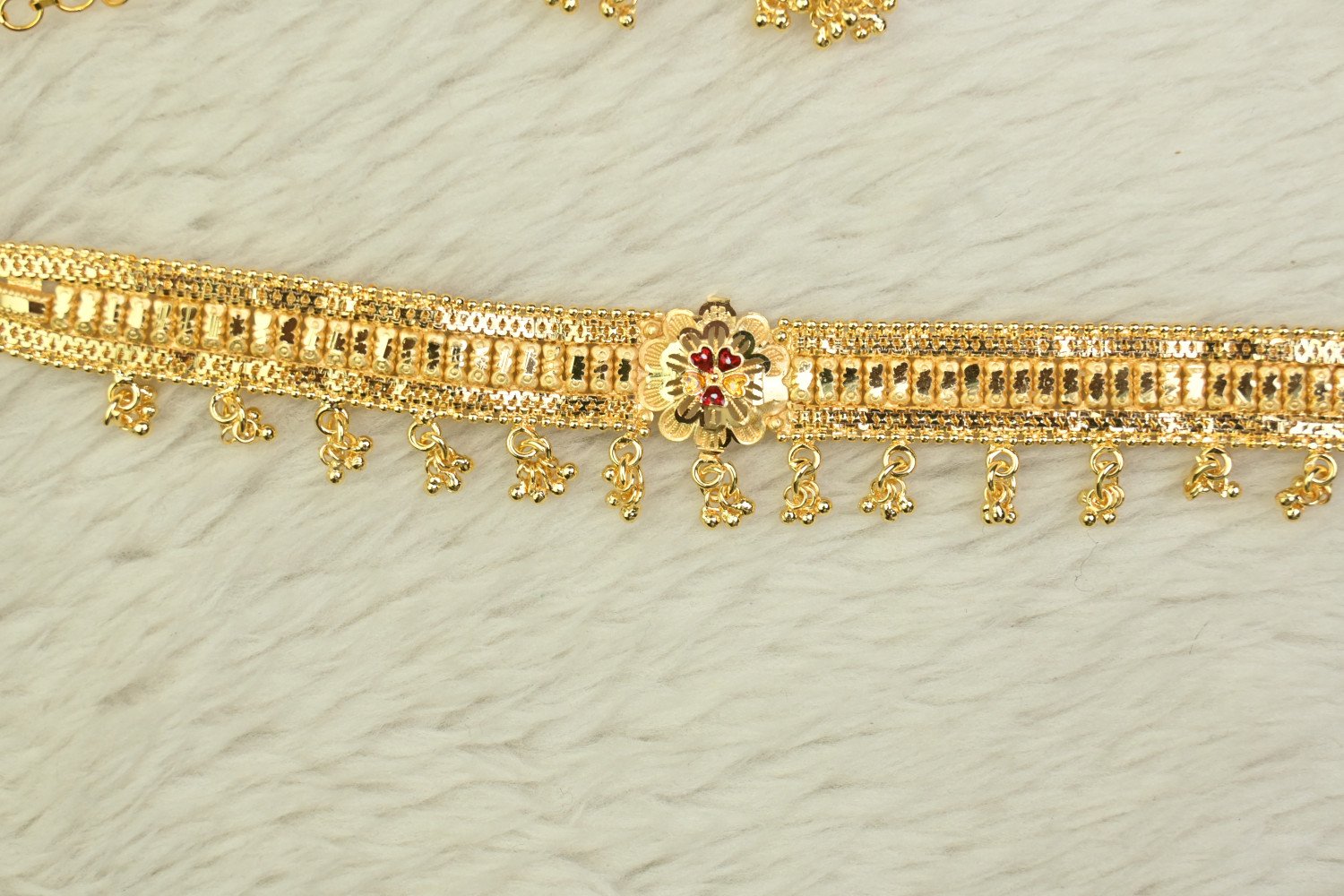 “Chic design meets elegant detail in this gold plated chikpatti for the stylish ladies. Features include a traditional texture, royal style, and latest trend design. Shining gold plating and brass construction ensure the chikpatti will make a lasting impression. Perfect for any occasion!”