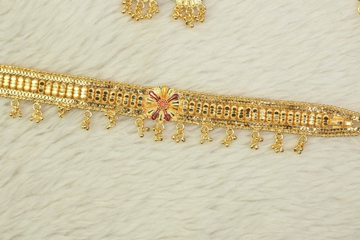 “Chic design meets elegant detail in this gold plated chikpatti for the stylish ladies. Features include a traditional texture, royal style, and latest trend design. Shining gold plating and brass construction ensure the chikpatti will make a lasting impression. Perfect for any occasion!”