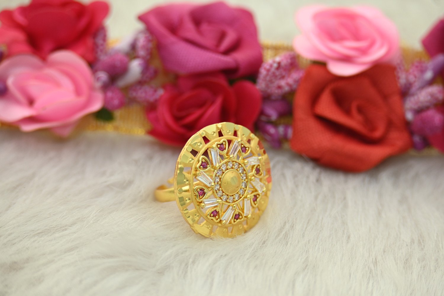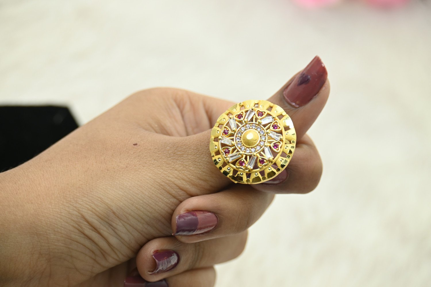 "अपने रोज़ाना के अंदाज़ को Laxmi Jewellers की इस गोल्ड प्लेटेड डेली वियर रिंग के साथ और भी खास बनाएं। आधुनिक महिलाओं की पसंद को ध्यान में रखते हुए तैयार की गई यह अंगूठी, सादगी और सुंदरता का बेहतरीन संगम है। प्रीमियम ब्रास और उच्च गुणवत्ता वाली गोल्ड प्लेटिंग के साथ, यह न केवल पहनने में आरामदायक है बल्कि आपके हर पहनावे को एक रॉयल लुक भी देती है। ऑफिस हो या घर, यह रिंग आपकी खूबसूरती में चार चाँद लगा देगी।"