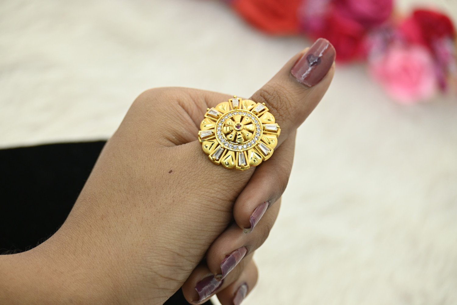 "अपने रोज़ाना के अंदाज़ को Laxmi Jewellers की इस गोल्ड प्लेटेड डेली वियर रिंग के साथ और भी खास बनाएं। आधुनिक महिलाओं की पसंद को ध्यान में रखते हुए तैयार की गई यह अंगूठी, सादगी और सुंदरता का बेहतरीन संगम है। प्रीमियम ब्रास और उच्च गुणवत्ता वाली गोल्ड प्लेटिंग के साथ, यह न केवल पहनने में आरामदायक है बल्कि आपके हर पहनावे को एक रॉयल लुक भी देती है। ऑफिस हो या घर, यह रिंग आपकी खूबसूरती में चार चाँद लगा देगी।"