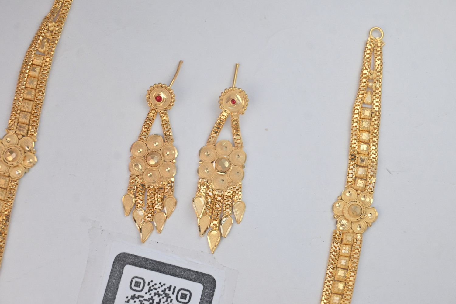 “Chic design meets elegant detail in this gold plate LAHORI for the stylish lady. Features include a traditional texture, royal style, and latest trend design. Shining gold plating and brass construction ensure the LAHORI will make a lasting impression. Perfect for any occasion!”