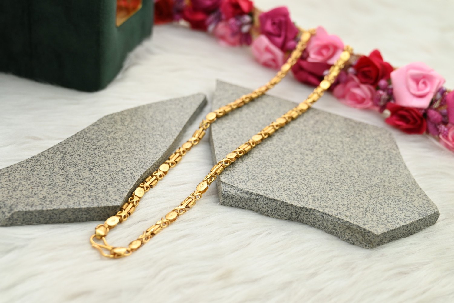 Define your style with the rugged elegance of our 1.5mg Gold Polish Men’s Chain. Crafted for the modern man who values tradition, these chains are a perfect blend of strength and sophistication. Whether it's a classic Curb link, a sturdy Figaro, or a sleek Nawabi design, our chains feature premium 1.5mg gold plating that delivers the heavy, rich look of solid gold. Designed to be a daily companion or a wedding statement, this collection brings a touch of "Macho" luxury to every outfit.