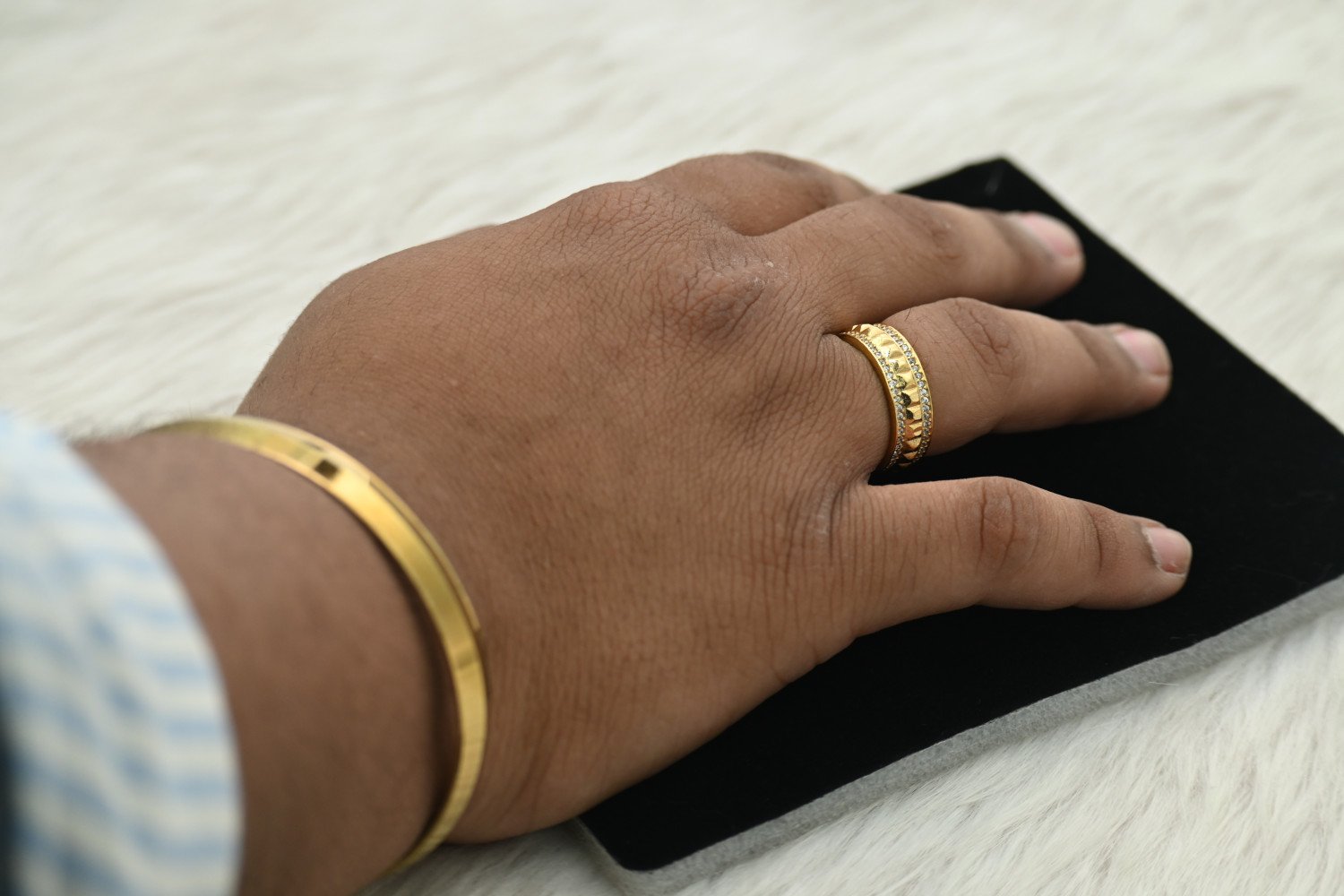 Apne vyaktitv ko ek nayi pehchan dein humari 1.5mg Gold Polish Men’s Ring Collection ke saath. Chahe wo heavy stone-studded signet rings ho ya phir simple aur elegant bands, hamari rings ko khas taur par aaj ke modern mard ke liye design kiya gaya hai. Iska premium 1.5mg plating aapko deta hai bilkul asli sone jaisa look aur chamak, jo har occasion—chahe office ho ya shaadi—mein aapki shaan badhayega.