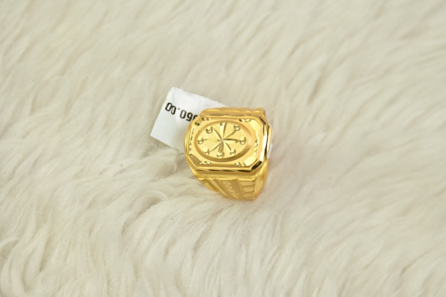 “Chic design meets elegant detail in this gold plated men’s ring for the stylish men’s. Features include a traditional texture, royal style, and latest trend design. Shining gold plating and brass construction ensure the men's ring will make a lasting impression. Perfect for any occasion!”