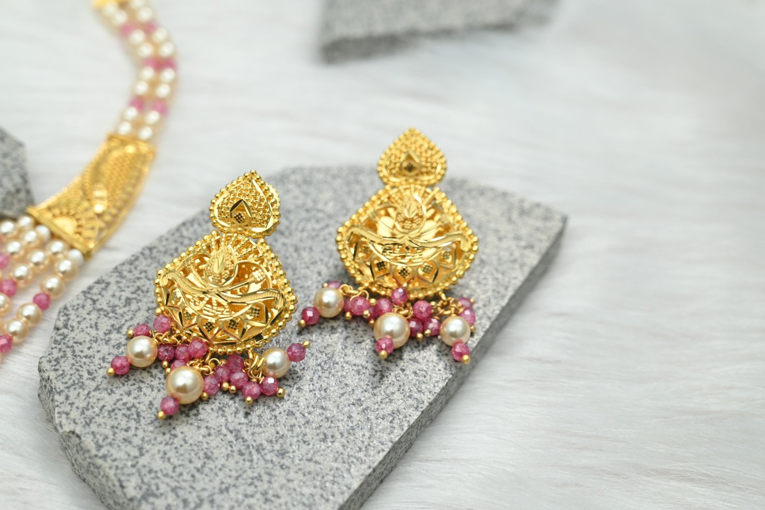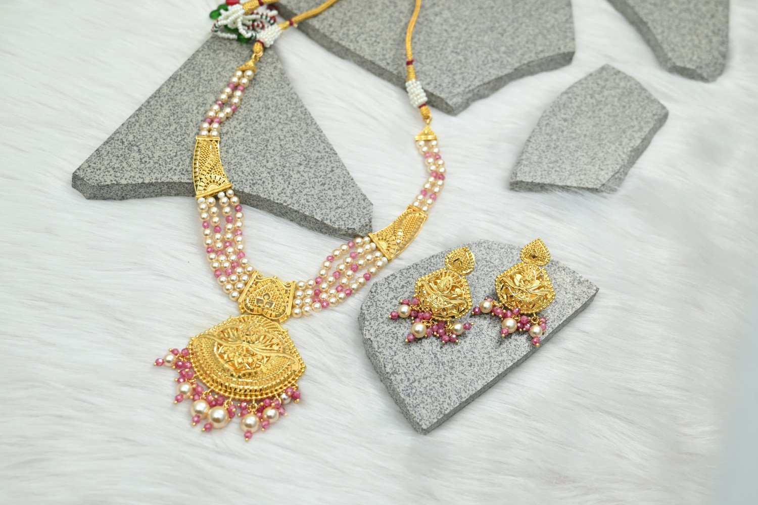 Discover the pinnacle of luster with our 5mg Gold Polish Necklace Set. Crafted to mirror the brilliance of solid gold, this collection features a specialized 5mg plating process that provides a deeper, longer-lasting glow. Whether it's a grand wedding or a festive celebration, the intricate detailing and radiant finish ensure you carry a look of pure opulence and unmatched sophistication.
