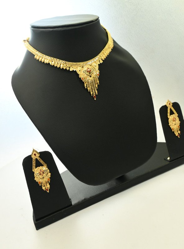 Elevate your style with our premium range of gold-plated artificial jewellery, beautifully crafted from high-quality brass metal. Designed to reflect the richness of real gold, each piece is intricately finished with a durable gold plating that adds a luxurious glow, perfect for both everyday wear and special occasions.