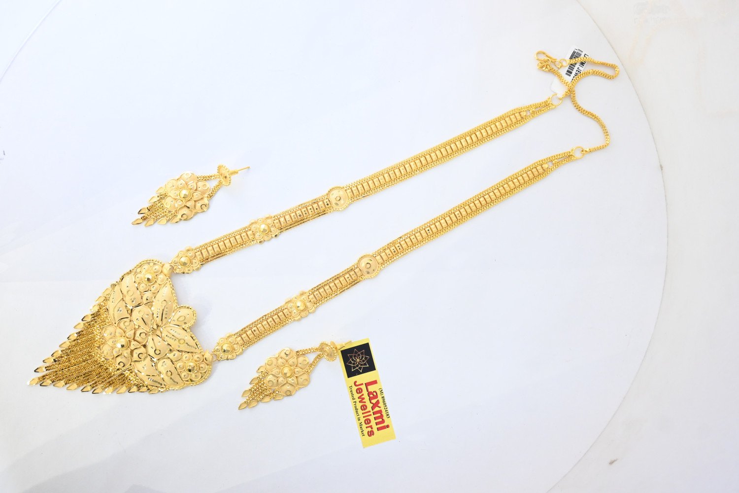 “Chic design meets elegant detail in this gold plated rani harr for the stylish ladies. Features include a traditional texture, royal style, and latest trend design. Shining gold plating and brass construction ensure the rani harr will make a lasting impression. Perfect for any occasion!”