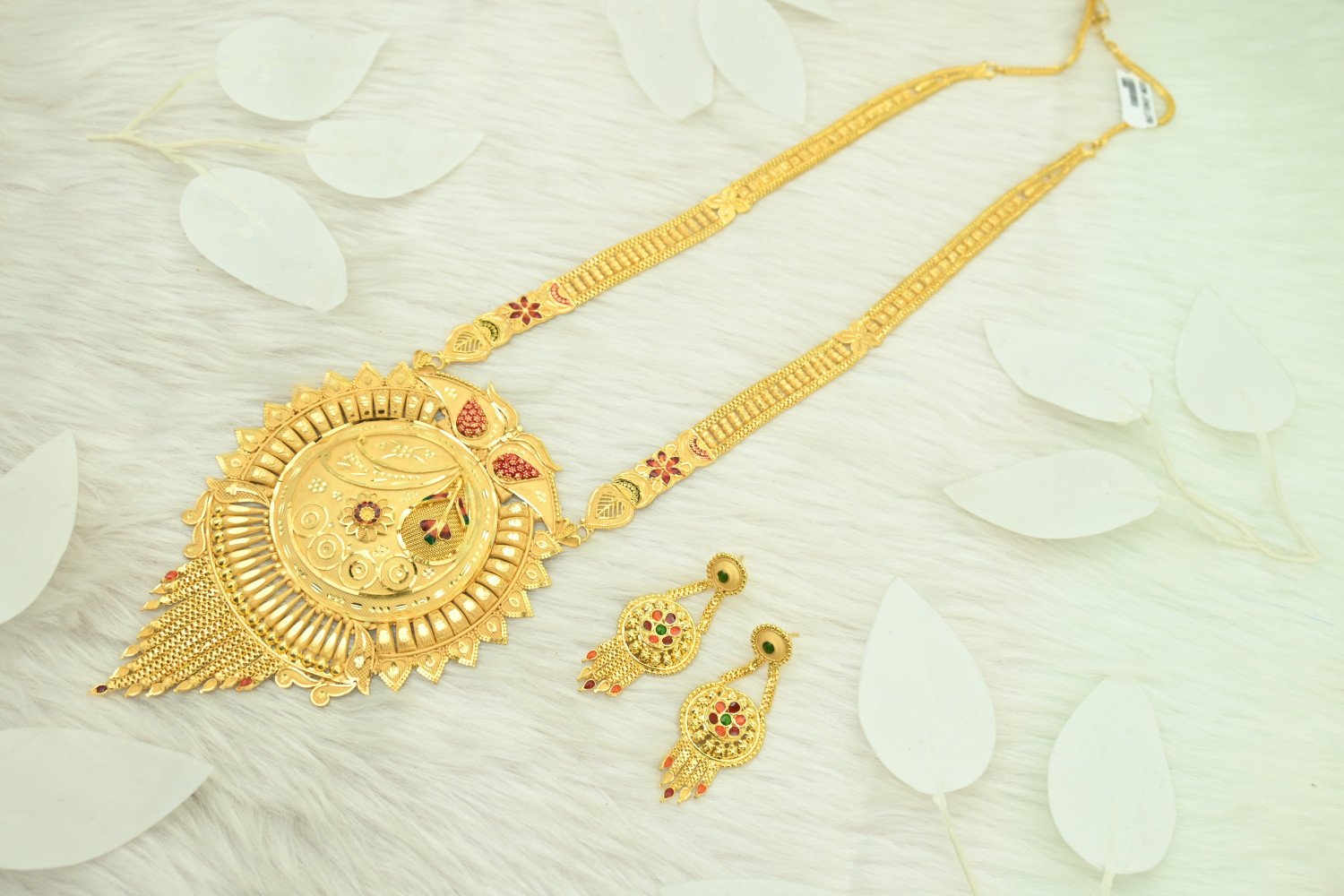 Embody royalty with our exquisitely crafted Gold Plated Rani Haar. Designed for the woman who loves elegance, this masterpiece features intricate traditional textures combined with a majestic royal silhouette. The high-sheen gold plating over premium brass construction ensures you command attention at every wedding, gala, or special occasion.