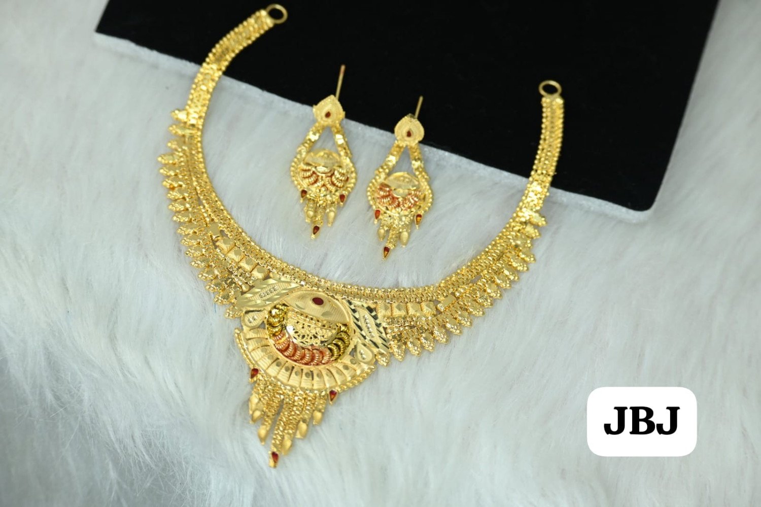 Define your grace with the majestic splendor of our 1.5mg Gold Polish Necklaces. This collection is a masterpiece of traditional craftsmanship, featuring intricate chokers, delicate chains, and ornate pendants. The premium 1.5mg gold plating offers a deep, regal luster that perfectly replicates the look of heritage gold, making it the ultimate statement piece for those who desire a royal silhouette.