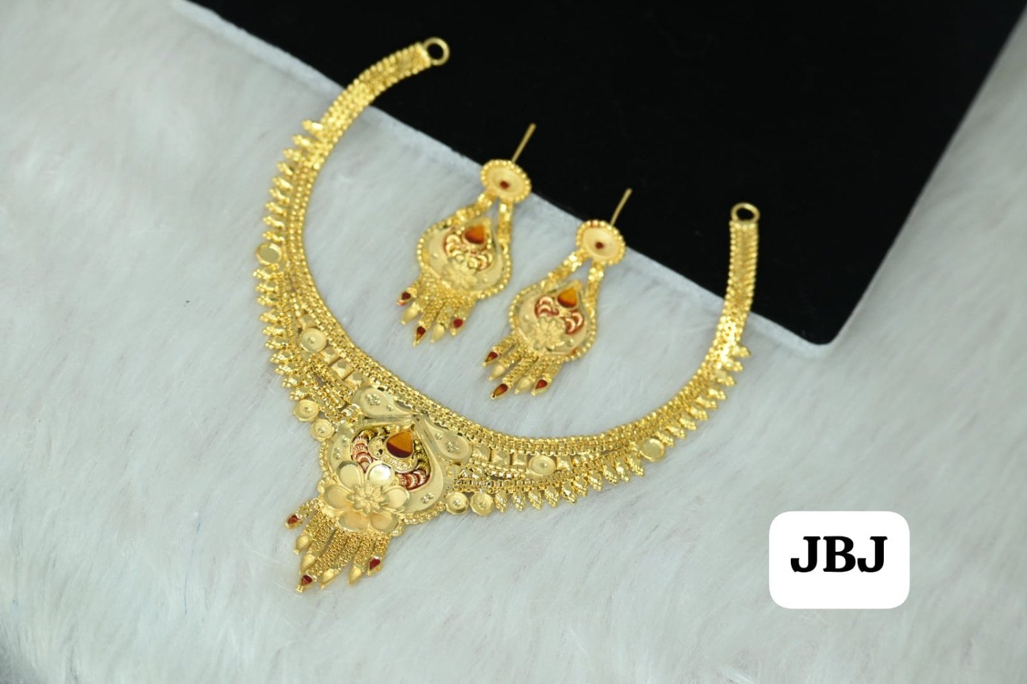 Define your grace with the majestic splendor of our 1.5mg Gold Polish Necklaces. This collection is a masterpiece of traditional craftsmanship, featuring intricate chokers, delicate chains, and ornate pendants. The premium 1.5mg gold plating offers a deep, regal luster that perfectly replicates the look of heritage gold, making it the ultimate statement piece for those who desire a royal silhouette.
