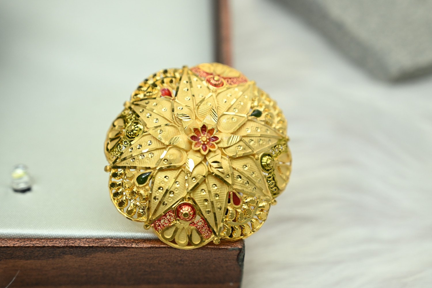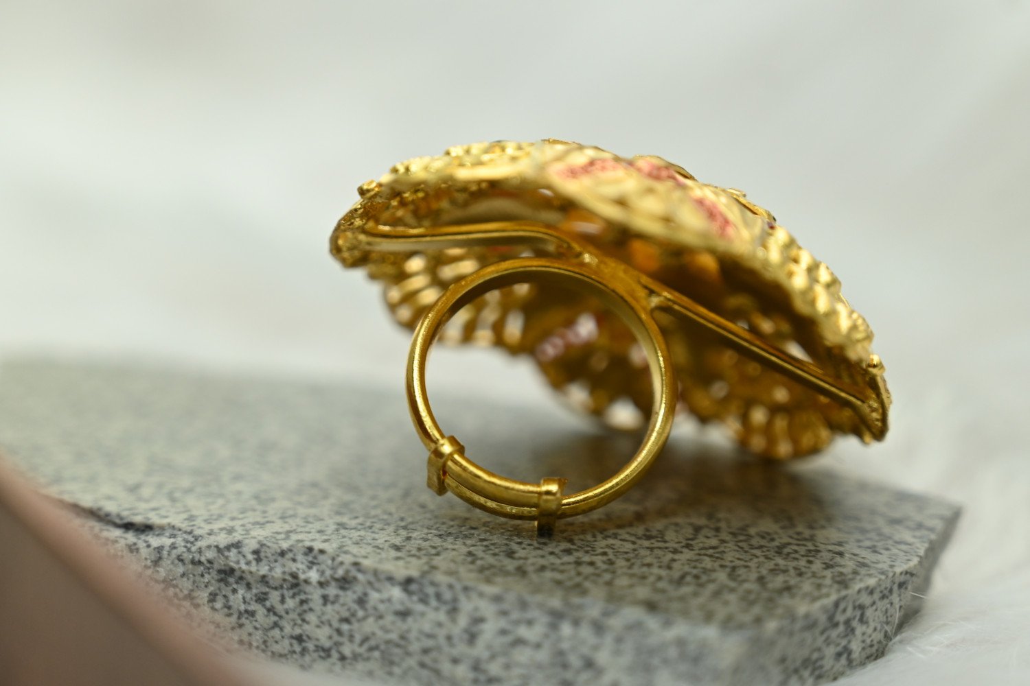 Masterpiece Design: Inspired by the grandeur of the Mughal courts, these rings feature expansive circular silhouettes, intricate hand-carved Meenakari or Jali patterns, and a majestic presence on the finger.