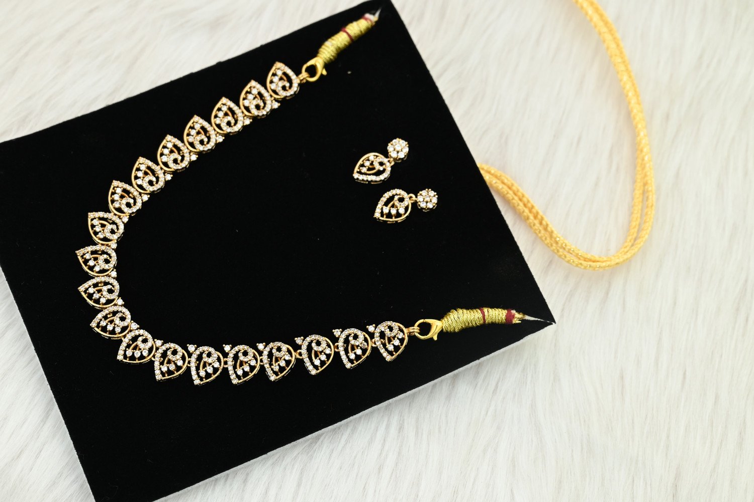 • Avoid Moisture: Keep your AD set away from water, sweat, and humidity to prevent the plating from tarnishing. (अपने ज्वेलरी को पानी और पसीने से बचाएं ताकि इसकी चमक फीकी न पड़े।)