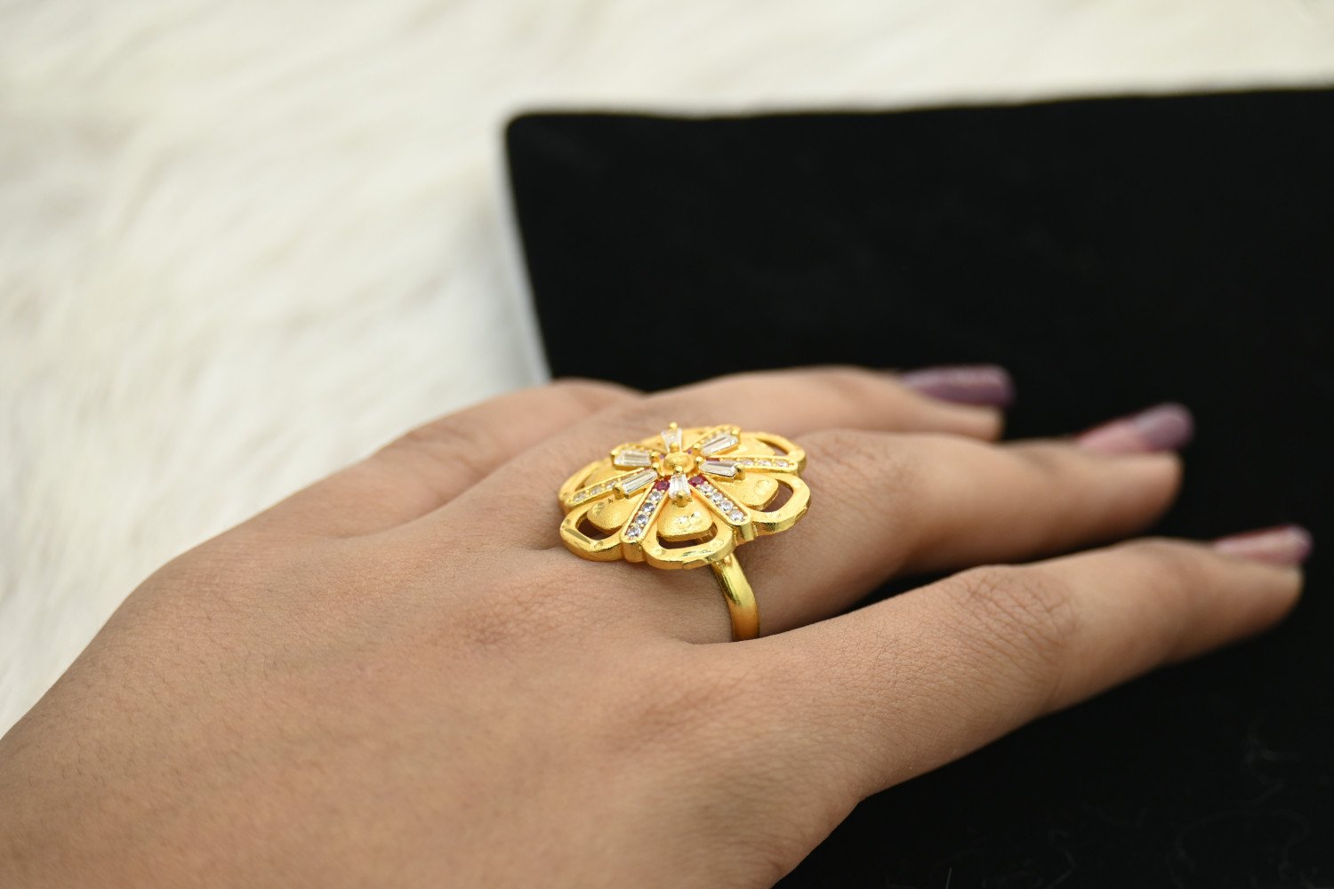 "अपने रोज़ाना के अंदाज़ को Laxmi Jewellers की इस गोल्ड प्लेटेड डेली वियर रिंग के साथ और भी खास बनाएं। आधुनिक महिलाओं की पसंद को ध्यान में रखते हुए तैयार की गई यह अंगूठी, सादगी और सुंदरता का बेहतरीन संगम है। प्रीमियम ब्रास और उच्च गुणवत्ता वाली गोल्ड प्लेटिंग के साथ, यह न केवल पहनने में आरामदायक है बल्कि आपके हर पहनावे को एक रॉयल लुक भी देती है। ऑफिस हो या घर, यह रिंग आपकी खूबसूरती में चार चाँद लगा देगी।"
