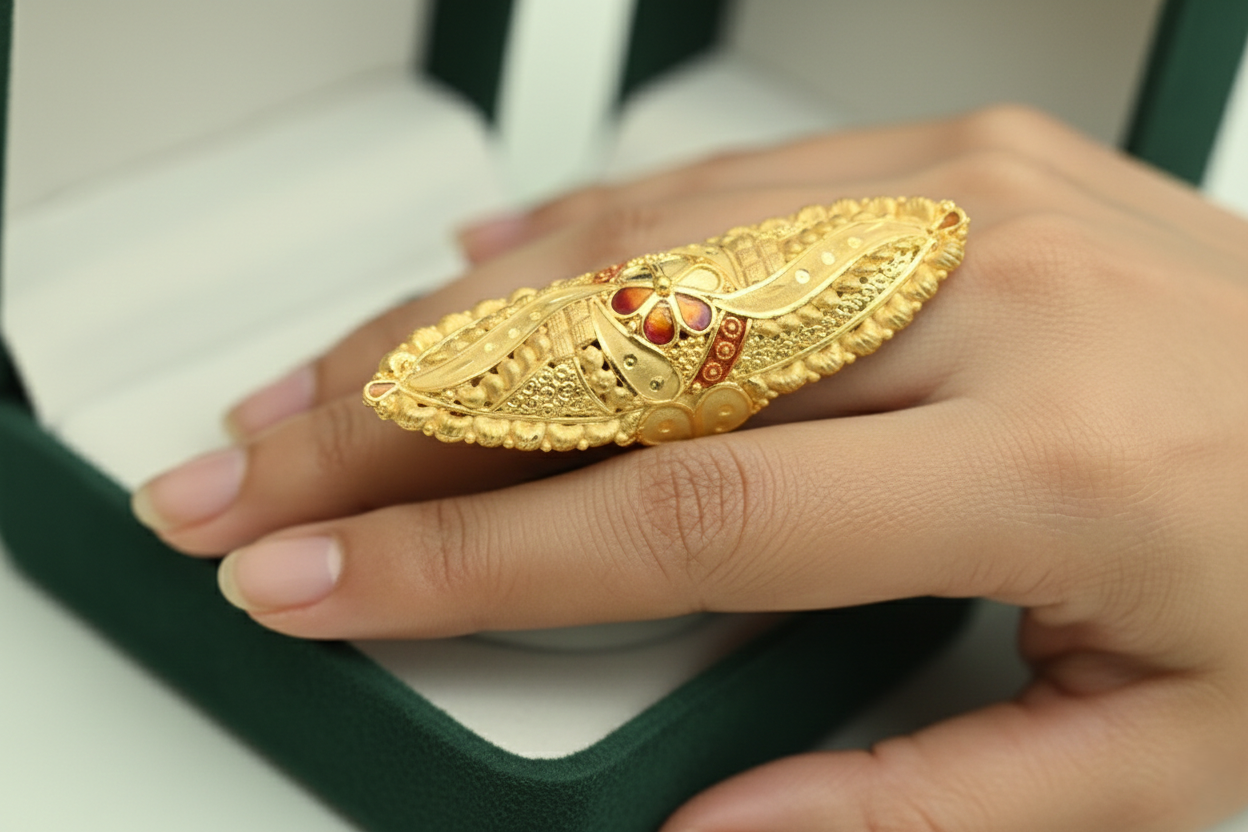 • Imperial Silhouette: Elongated designs that flatter the hand, featuring traditional Jali work, floral motifs, and grand center-stones.