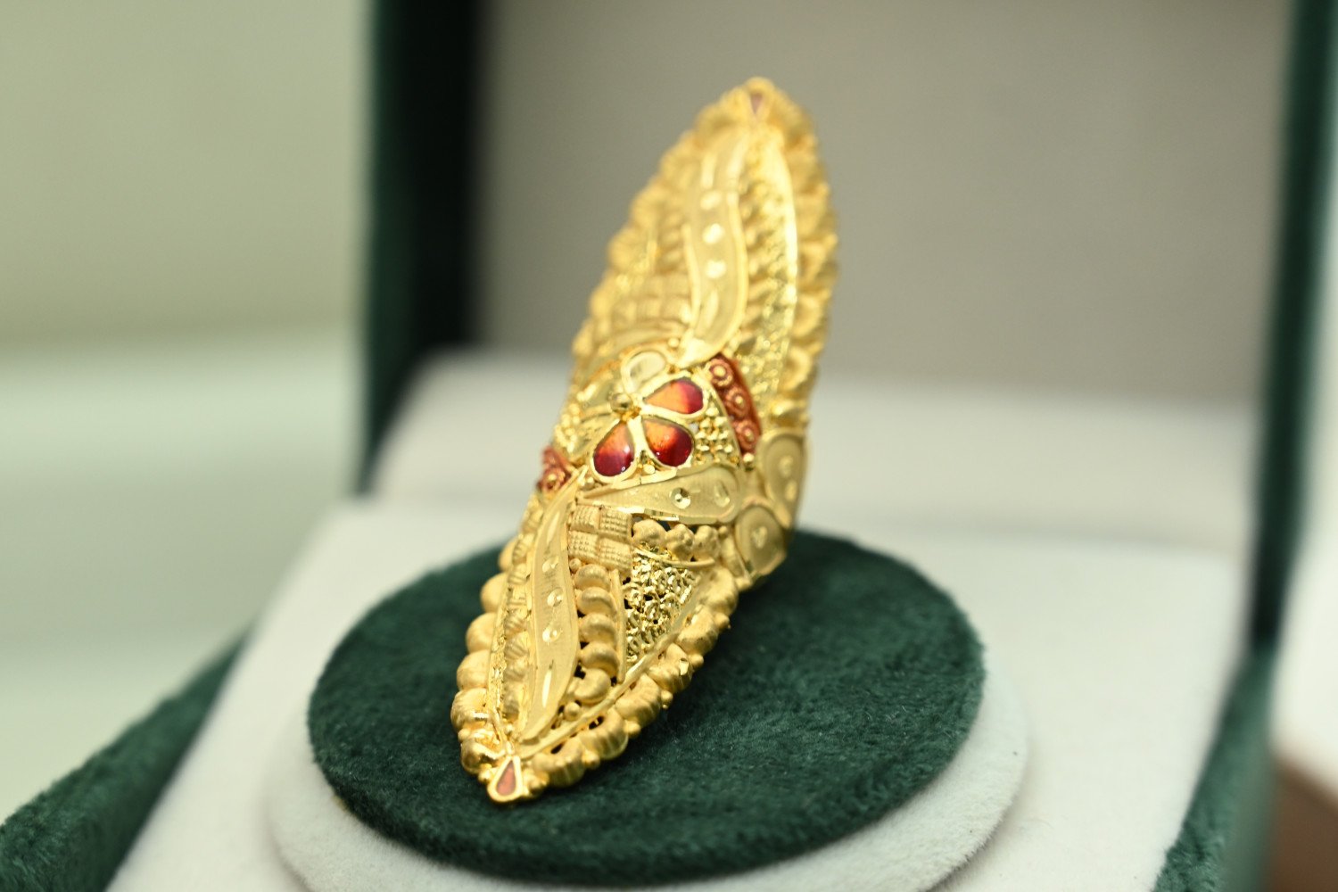 Make a grand statement with the majestic appeal of our 1.5mg Gold Polish Long Rings. These aren't just rings; they are "Finger Armour" designed to cover the knuckle with intricate artistry. Featuring the premium 1.5mg plating, these rings offer a deep, authentic heritage gold look that perfectly mimics solid gold jewellery, ensuring you command attention at every occasion.