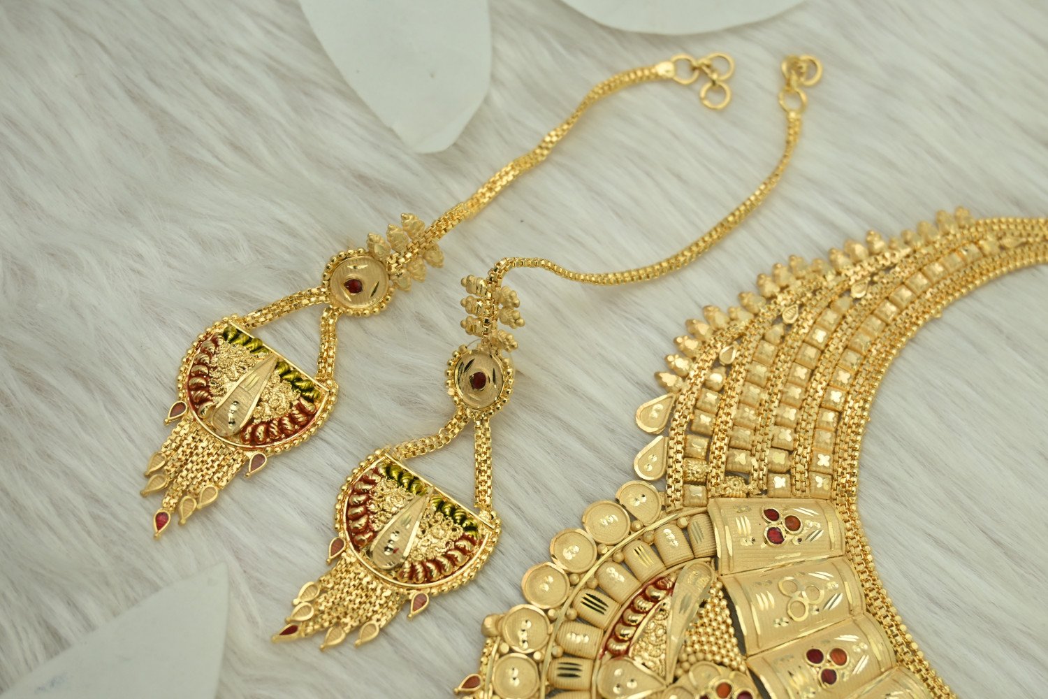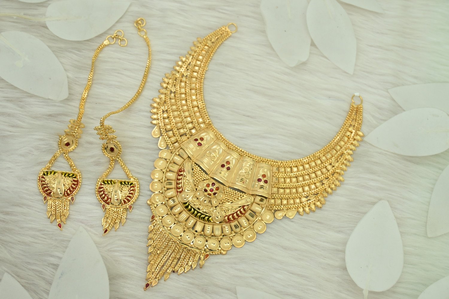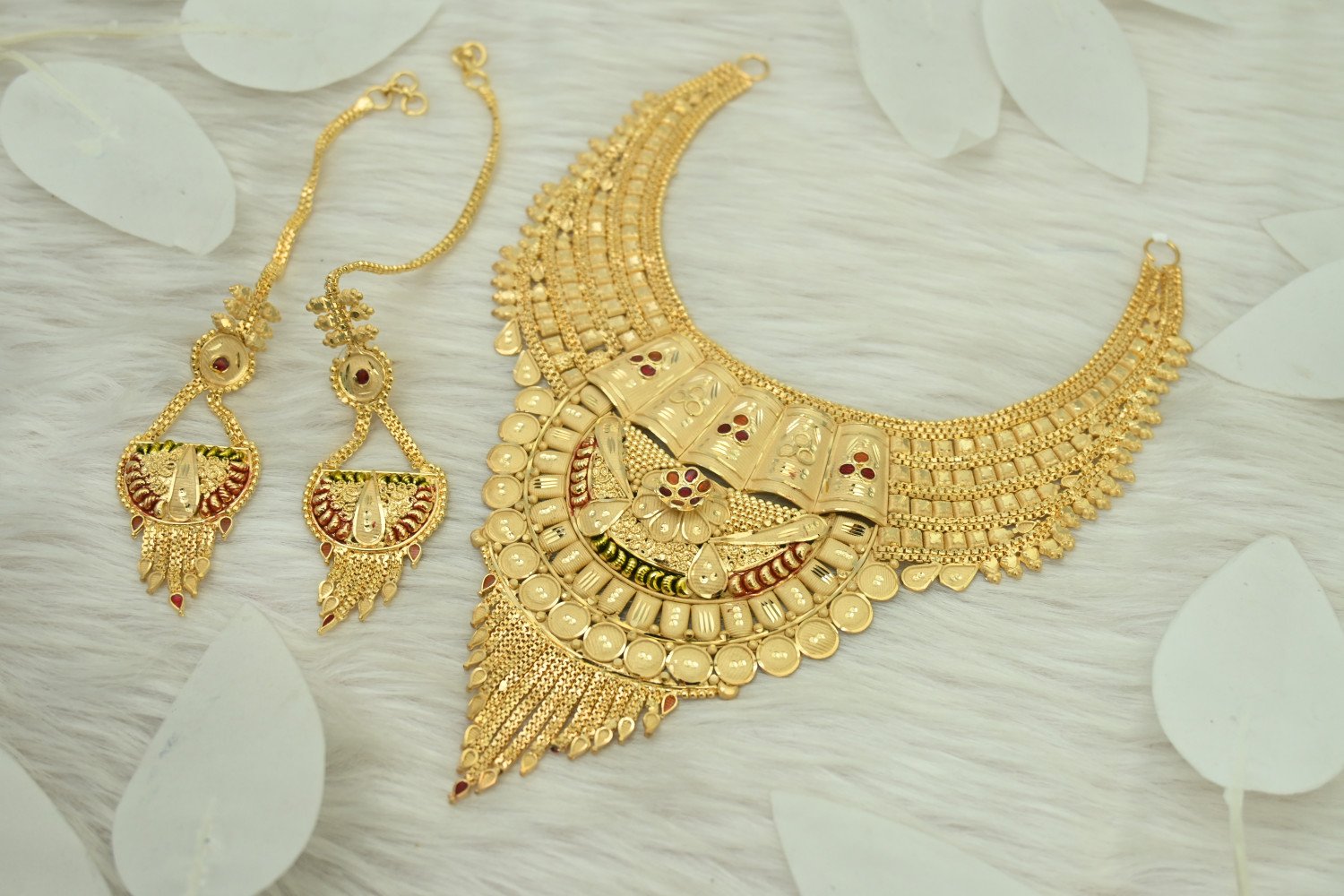 “Chic design meets elegant detail in this gold plated necklace for the stylish ladies. Features include a traditional texture, royal style, and latest trend design. Shining gold plating and brass construction ensure the necklace will make a lasting impression. Perfect for any occasion!”