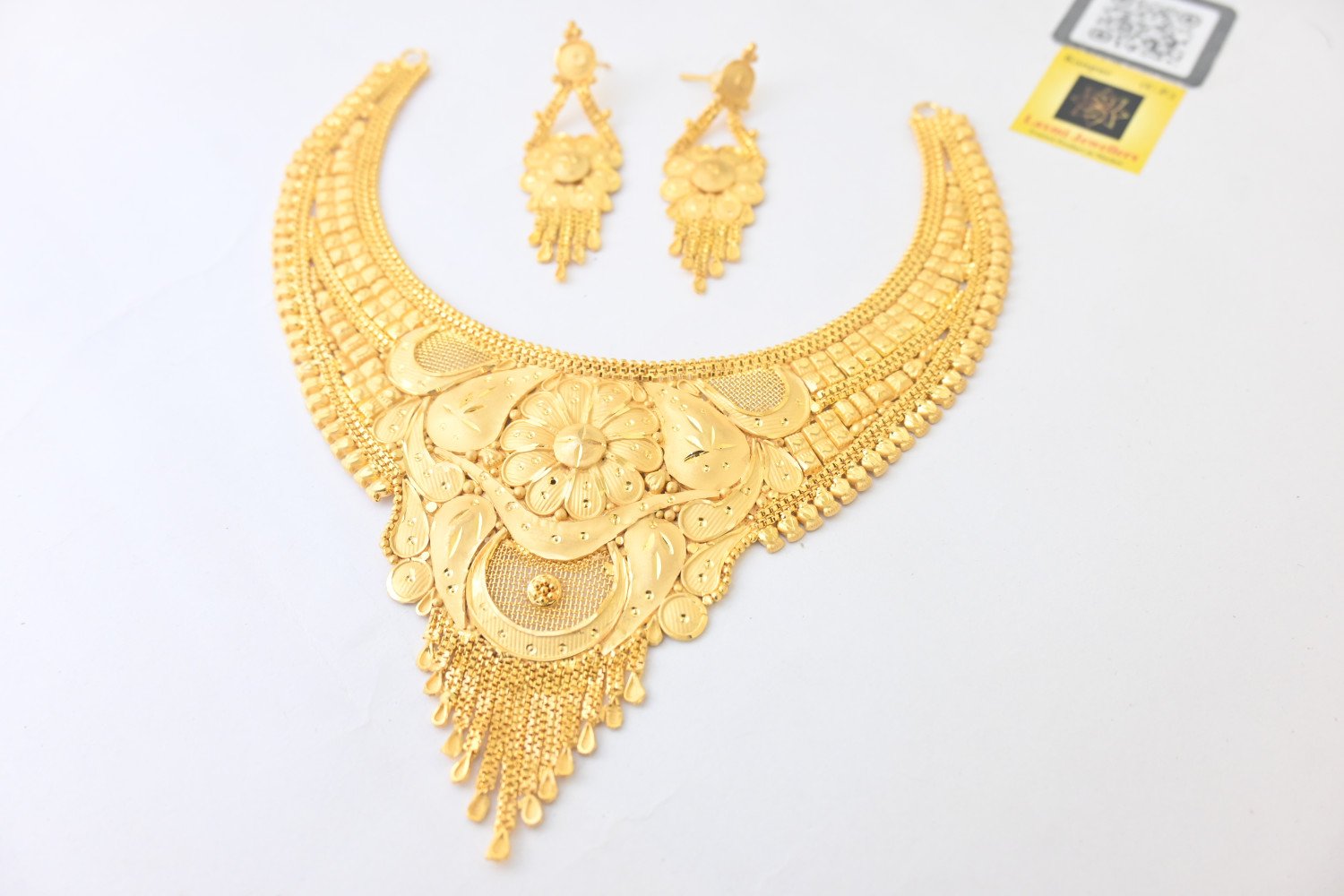 Product Colour: 1.5gms 24 Carat Gold Plated (1.5mm thick gold layer coated over it) Polish: Gold Plated Base metal: Brass/ Alloy Occasion: Bridal, Gifting, Party * 1.5gms 24 Carat Gold Plated ( 1.5mm thick gold layer coated over it) “Chic design meets elegant detail in this gold plated jhale set for the stylish lady. Features include a traditional texture, royal style, and latest trend design. Shining gold plating and brass construction ensure the jhale will make a lasting impression. Perfect for any occasion!” Laxmi Jewelers – our products are made from high quality material with best in comfort and look across the Globe. Our Brand is well known in jewelry sector and preferred by many Designers, Stars and Celebrities for the finest design. Perfect Gift our products are best as gift option for your Friends, Relative, Husband / Boyfriend during Anniversary, Birthday Valentines or any Festival. Care Instructions: Wipe your jewellery with a soft cloth after every use हर इस्तेमाल के बाद अपने आभूषण को एक मुलायम कपड़े से पोंछ लें Do not soak your jewellery in water आभूषण को पानी में न डुबाये Do not clean your jewellery in with soap or any other chemicals अपने आभूषणों को साबुन या किसी अन्य रसायन से साफ न करें Clean your jewellery using a soft brush, dipped in jewellery cleaning solution only केवल आभूषण की सफाई के रसायन के साथ एक नरम ब्रश का उपयोग करके अपने आभूषण को साफ करें