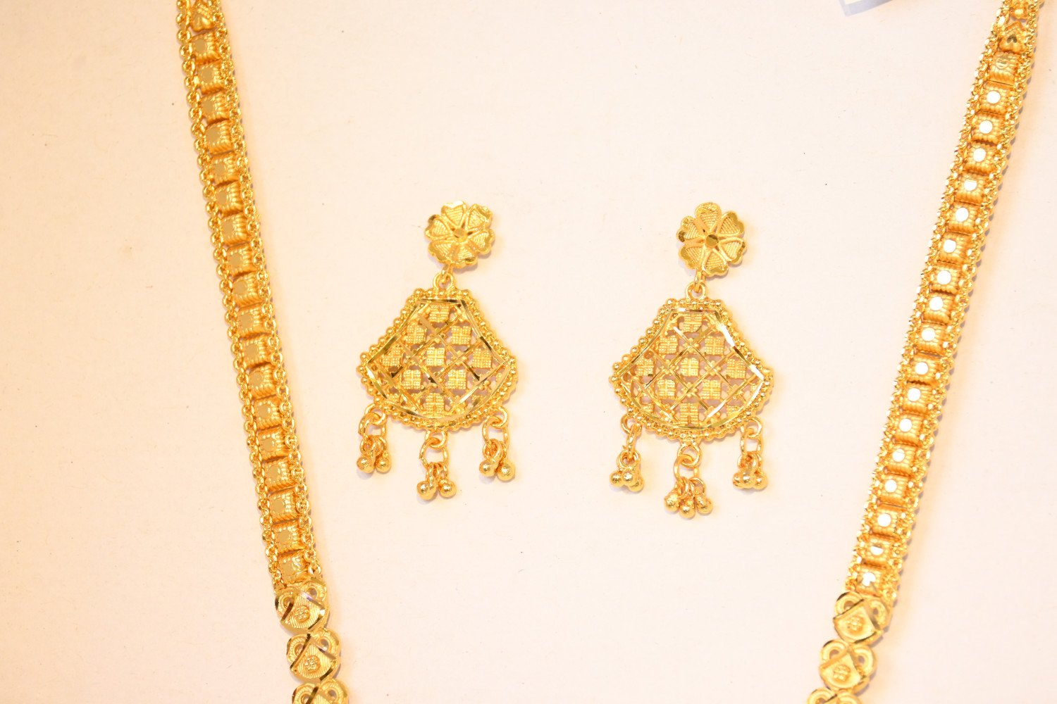 “Chic design meets elegant detail in this gold plated rani harr for the stylish ladies. Features include a traditional texture, royal style, and latest trend design. Shining gold plating and brass construction ensure the rani harr will make a lasting impression. Perfect for any occasion!”