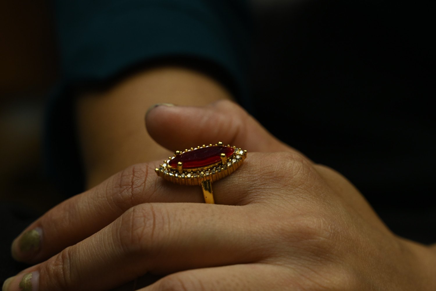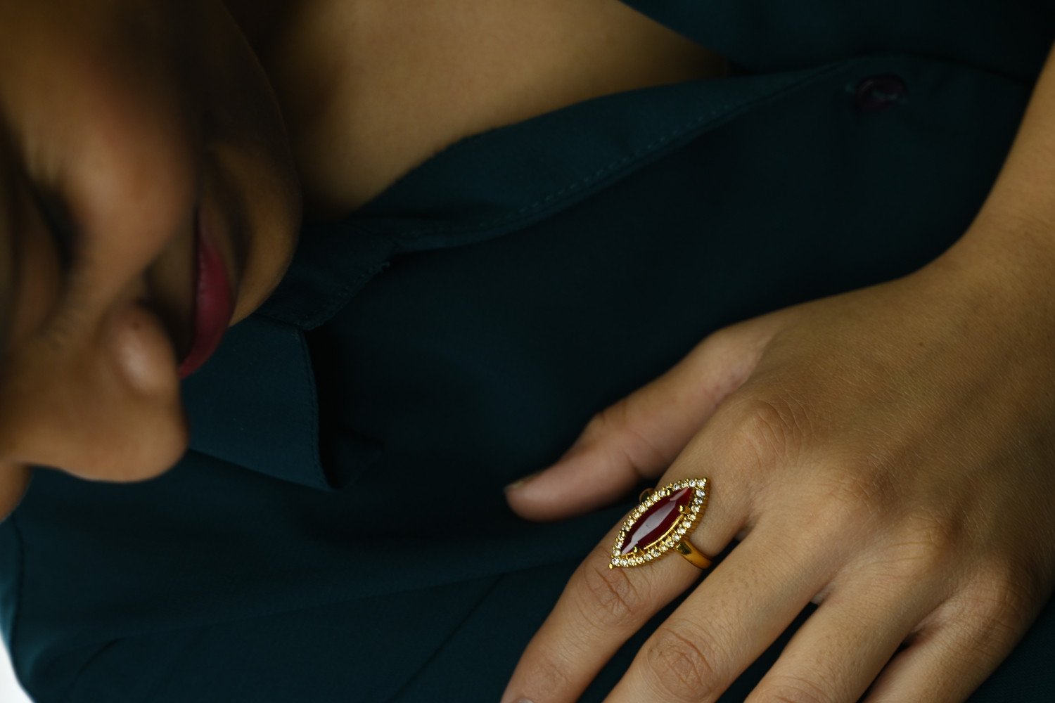 • Avoid Perfumes: Direct perfume ya sanitizer ring par na lagne dein, isse stones ki chamak fiki pad sakti hai. (इत्र या सैनिटाइज़र को सीधे अंगूठी पर न लगने दें।)